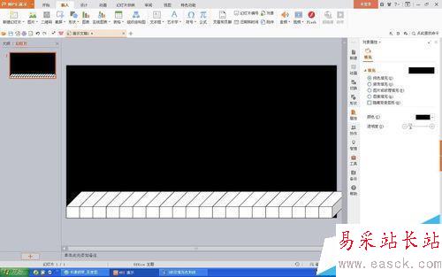 2、插入形狀立方體調整成琴鍵的樣子。修改填充色和線條顏色。