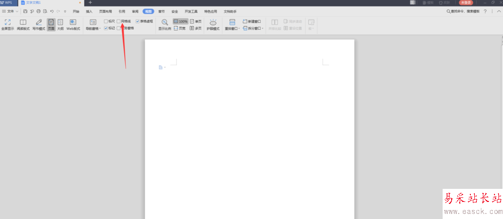 3、在視圖功能下面,我們看到下圖中的網(wǎng)格線是沒有被勾選。
