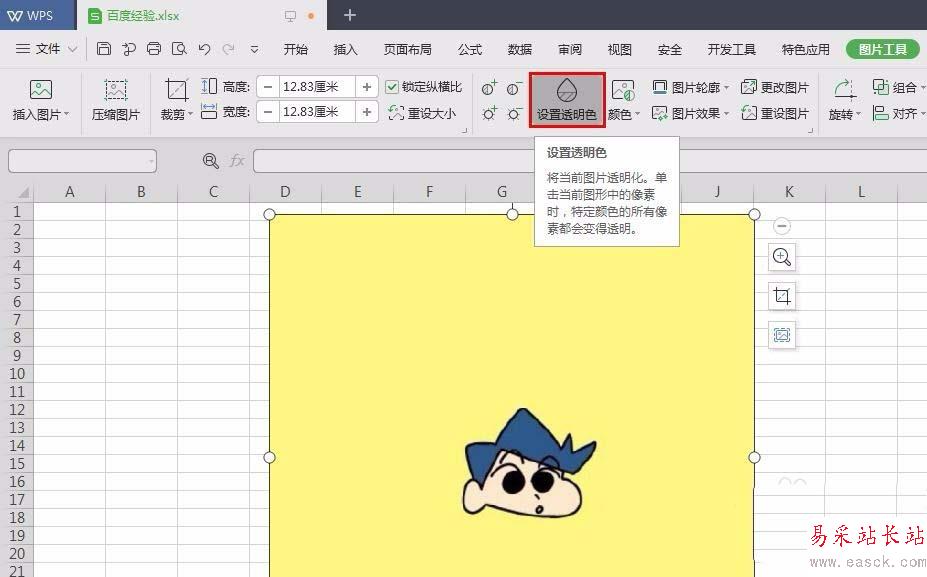 4、在菜單欄“圖片工具”中單擊“設置透明色”。