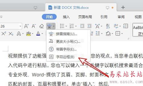 3、在彈出的下拉菜單中我們選擇“字符邊框”的菜單項。