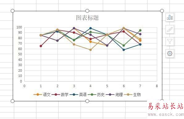 6、通過屬性編輯,可以使直線和數據標記的散點圖更美觀。
