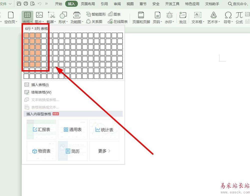 2、單擊菜單欄中“表格”。選擇插入一個6行3列的表格