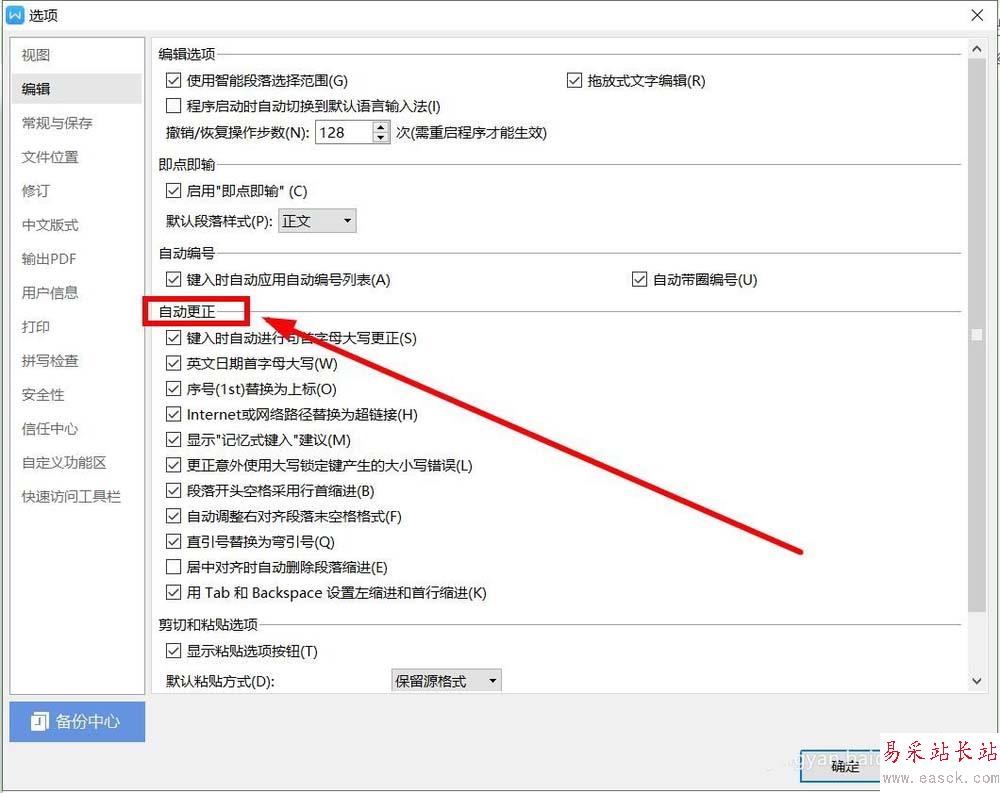 5、在頁面右側(cè)找到“自動更正”選項