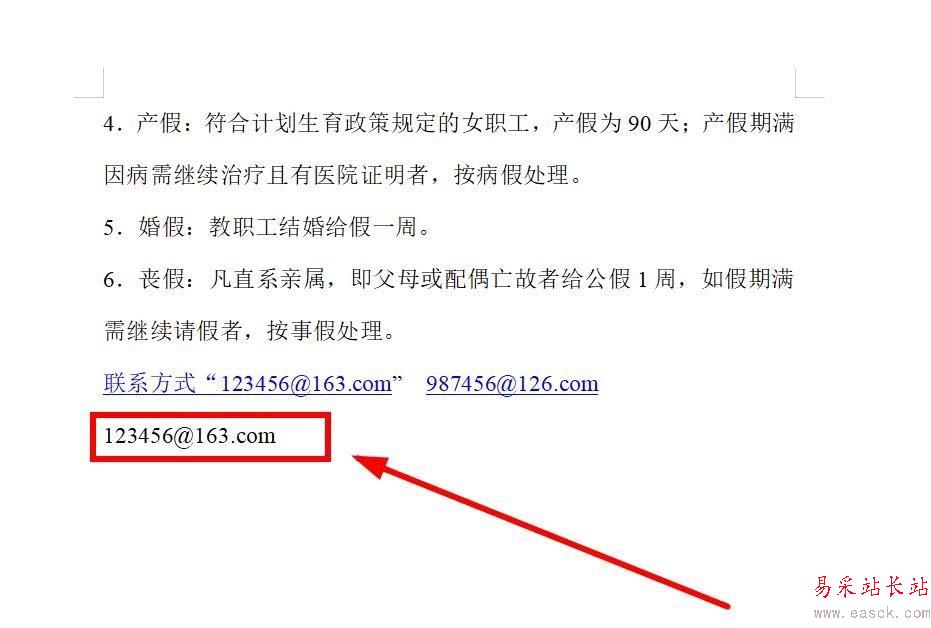 1、打開任意一個Word文檔,或者新建一個文檔,輸入隨意編制的郵箱地址“123456@163.com”“987456@126.com”,會發(fā)現(xiàn)自動帶上超鏈接