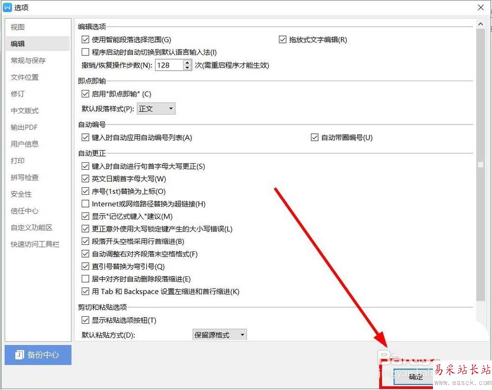 4、選擇“選項”中左邊一列的“編輯”單擊