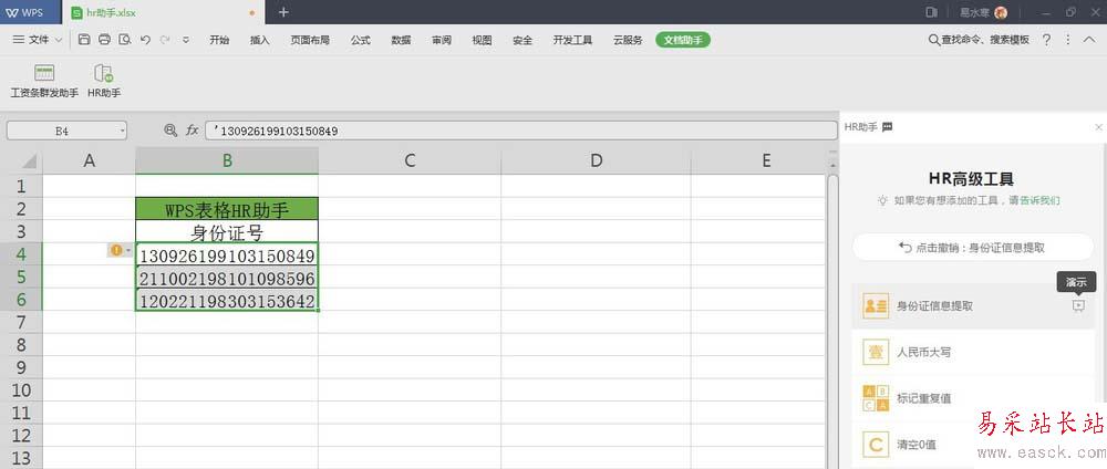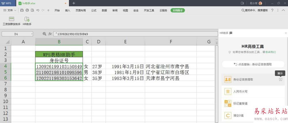 以上就是WPS表格HR助手快速提取身份證號中的身份信息的教程,希望大家喜歡,請繼續關注錯新站長站。