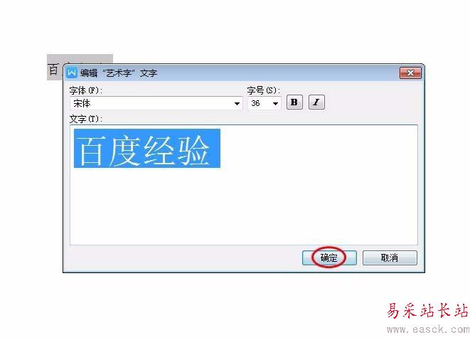 5、可以根據(jù)自己的需要設(shè)置藝術(shù)字的字體和字號(hào),單擊“確定”按鈕。