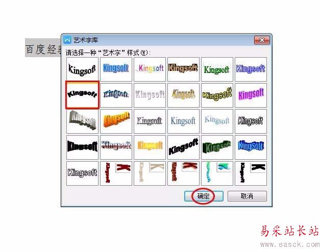4、在藝術(shù)字庫中選擇弧形藝術(shù)字,單擊“確定”按鈕。
