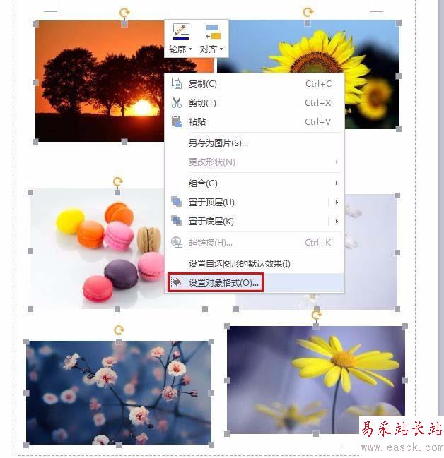 3、單擊鼠標右鍵,選擇“設置對象格式”。