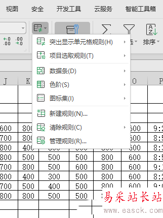 3、單擊【條件格式】按鈕,彈出選項菜單國。