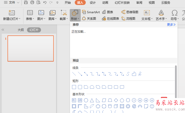 3、之后我們點擊形狀下方的下拉箭頭;