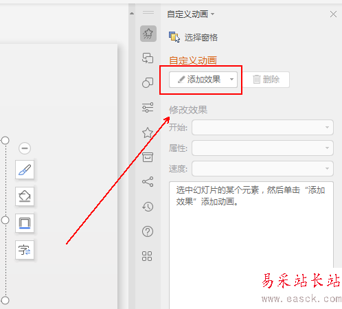 4、在右側的側邊欄中單擊【添加效果】選項。