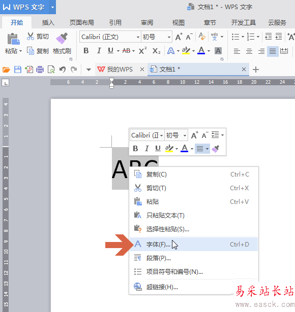 4、彈出菜單后,再點擊菜單中的【字體】。