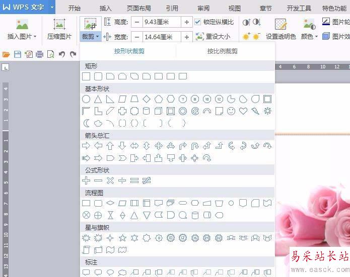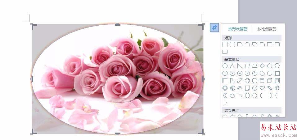 6、單擊“裁剪”按鈕,可以按照形狀裁剪,也可以按照比例裁剪。