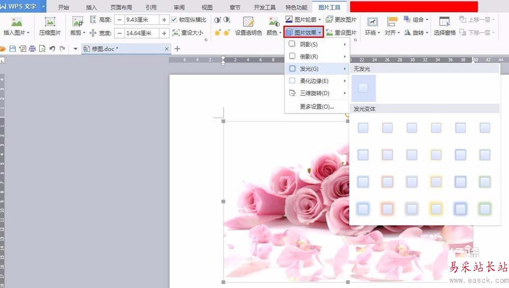 5、單擊“圖片效果”,根據(jù)自己的需要設置圖片效果。