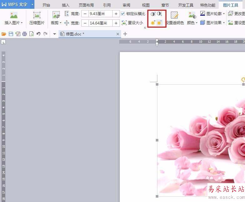 4、單擊紅色線框標記的按鈕,調(diào)整圖片的亮度。