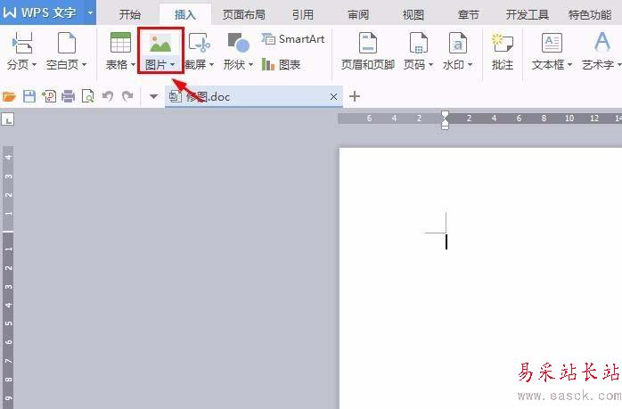2、在菜單欄“插入”中選擇“圖片”。