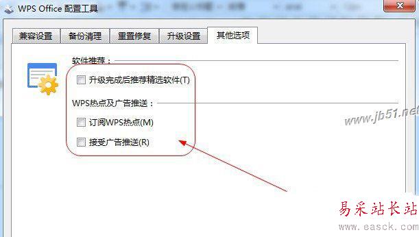6、在【其他選項】里面關掉所有的軟件推薦,然后點擊【確定】,這個地方是大量廣告的來源,也是一些新聞熱點推薦的地方,所以要關掉;