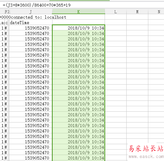 7、這前的公式是毫秒,如果是秒,就不需要除1000了。如:=(J3/1000+8*3600)/86400+70*365+19。如果是其他時區,就將8*3600改成 時區*3600