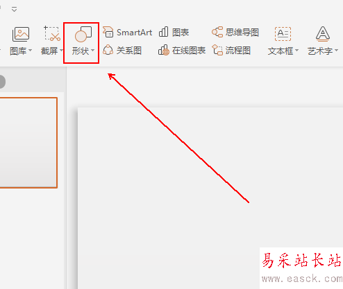 2、在【插入】工具列表中單擊【形狀】工具旁邊的倒三角。