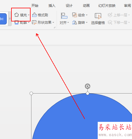 6、在【繪圖工具】工具列表中單擊【填充】工具旁邊的倒三角。