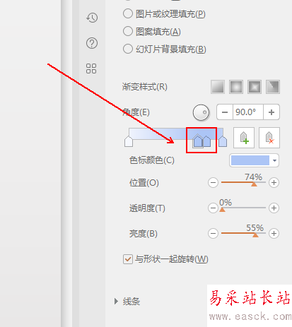 9、在下方的【角度】色條中分別點擊各個色塊。