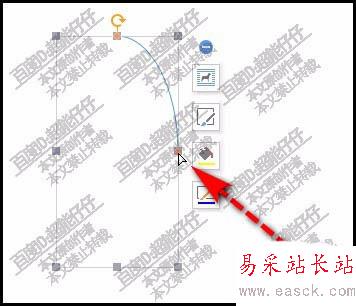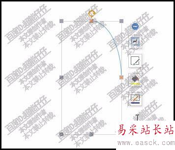 4、我們看弧線兩端,各有一個黃色的方塊,這是操作點,鼠標點住任意一個點,可以拉長。