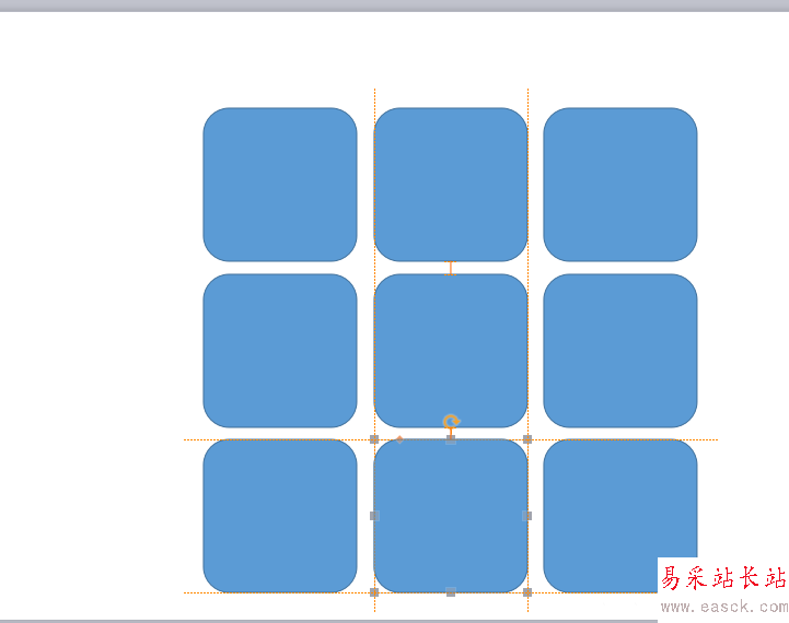 2、然后按住Ctrl+移動形狀可以快速的復制一個形狀,然后重復操作排列一個九宮格