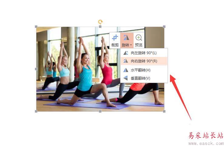 2、另外一種辦法就是可以在圖片的選中的情況下右鍵---旋轉,如圖所示。