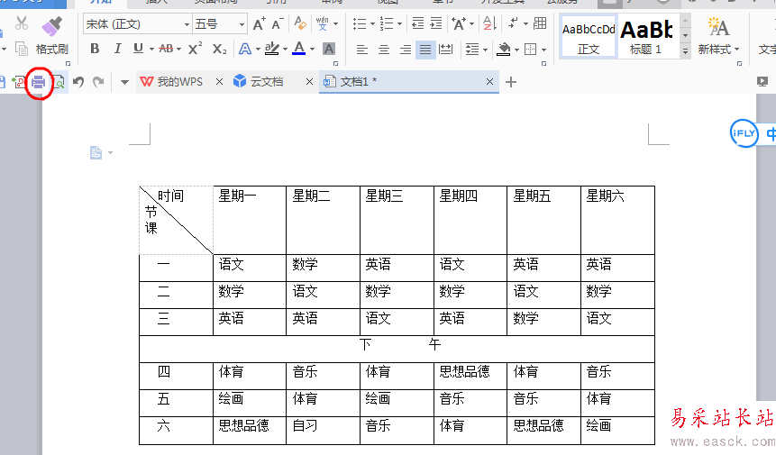 7、斜線表頭就制作完成了,在兩側(cè)打字,這樣一個(gè)課程表就制作成功了。點(diǎn)擊打印,就可以收到。剪下來(lái)貼在課桌上。在制作過(guò)程中如有失誤可以撤銷(xiāo),撤銷(xiāo)鍵下圖紅圈,點(diǎn)一下就撤銷(xiāo)一步。