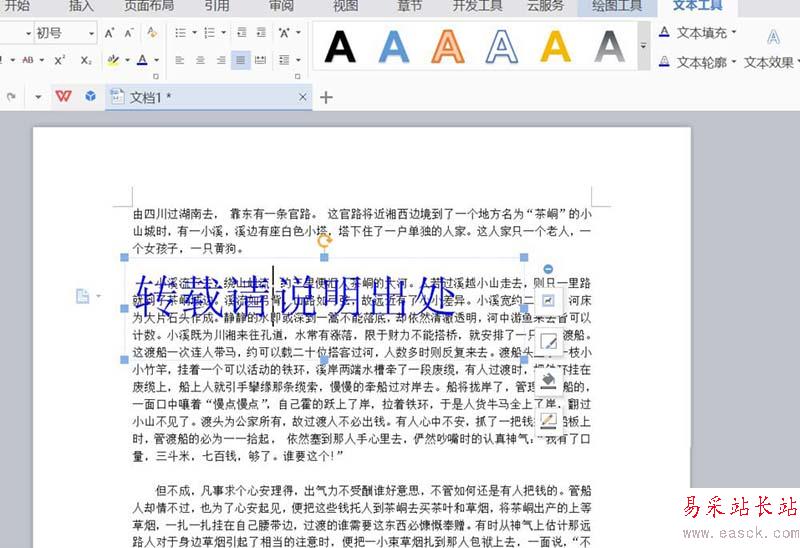 6、按住文本框上的橘色,進行旋轉。如圖。