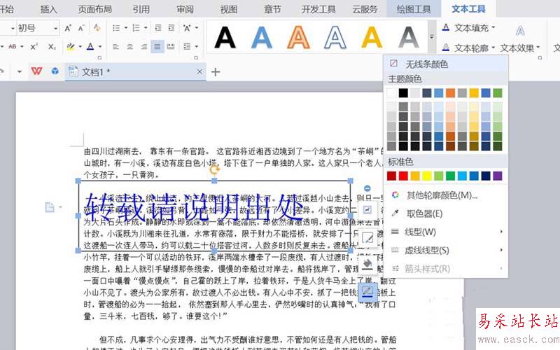 3、畫出文本框并輸入文字。設置文字大小及顏色,并調整文本框大小。如圖。