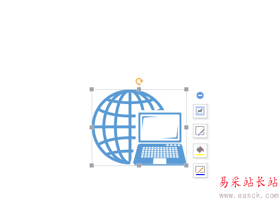 5、這個互聯網的圖形我們可以調整它的大小,方法是點擊圖形出現邊界的小點以后,點擊這些點進行拉伸就可以隨意更改圖形的大小