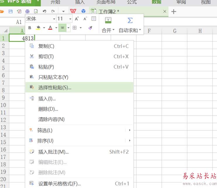 2、粘貼之后,右擊選擇選擇性粘貼。如圖。