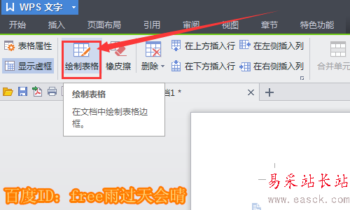 2、在下面的工具欄中找到箭頭所指的“繪制表格”并點擊。