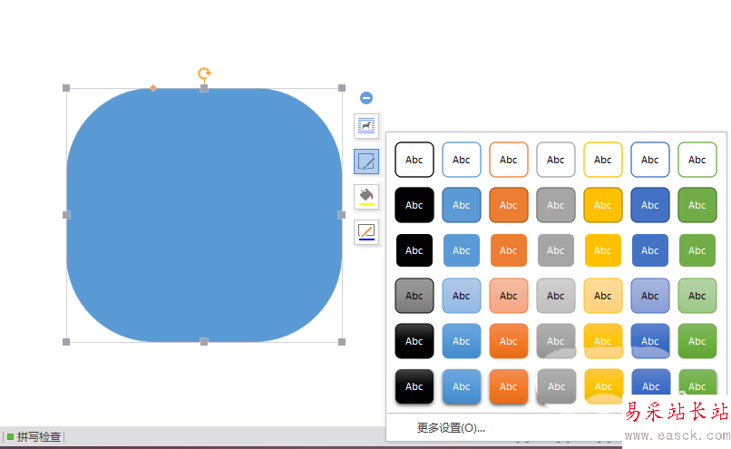 6、圓角矩形的形狀樣式也是可以進(jìn)行調(diào)節(jié)的,我的只需點(diǎn)擊圖形右側(cè)的小操作欄中的形狀樣式選項(xiàng)進(jìn)行選擇就可以了