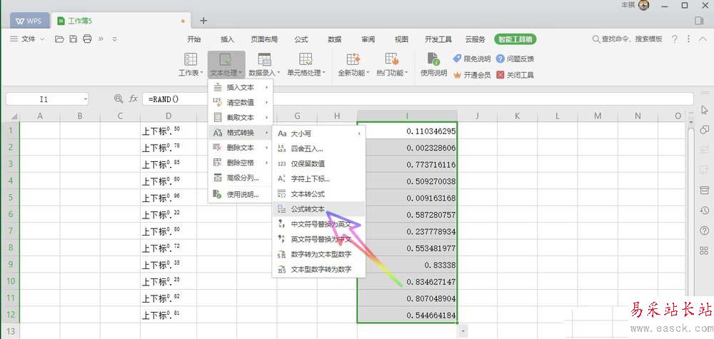 4、在下拉列表中,我們找到公式轉文本,點擊一下,如下圖所示,