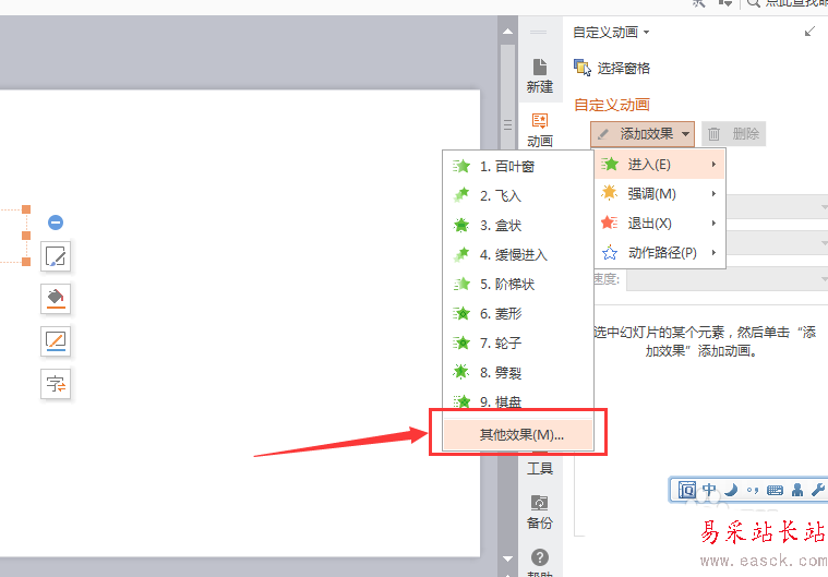 5、在下拉選項中選擇(進入)--(其他效果)