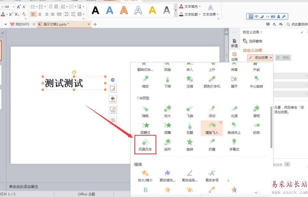 WPS可以給文字添加玩具風車動畫效果,該怎么添加呢?下面我們就來看看詳細的教程。