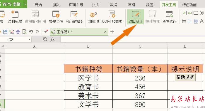 7、然后,鼠標左鍵單擊【退出設計】模式,這樣就可以測試命令按鈕中的代碼,如下圖所示。
