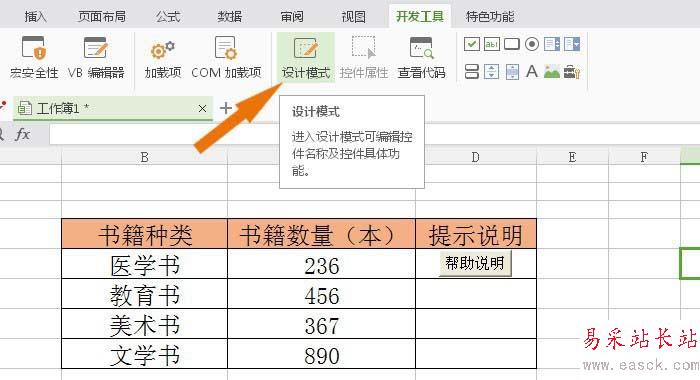 3、然后,鼠標左鍵單擊【設計模式】,如下圖所示。