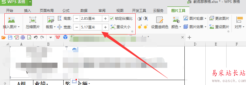 5、然后選擇一個圖片,點擊繪圖工具的時候都會顯示這個編輯的調整單位了,如圖所示,都是厘米的。