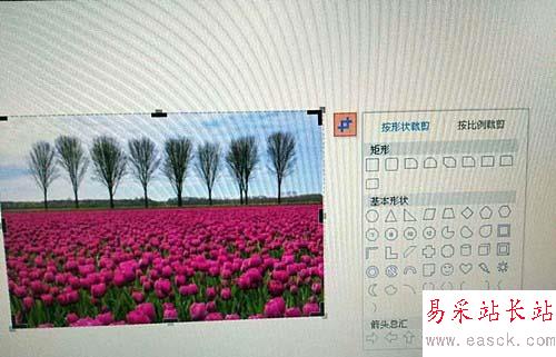 5、裁剪分為按形狀裁剪和按比例裁剪,按鍵按形狀裁剪,然后在下拉菜單中選棱臺(tái)圖形。