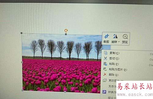 4、打開圖片后,點(diǎn)擊圖片按右鍵,系統(tǒng)會(huì)自動(dòng)彈出一個(gè)快捷菜單,在這個(gè)菜單中單擊裁剪。