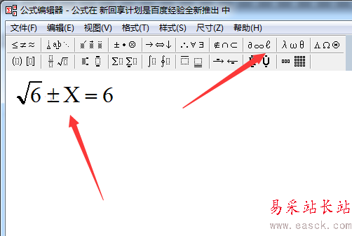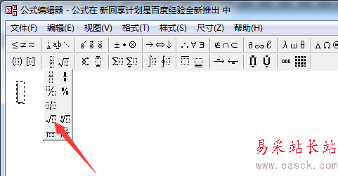 3、進入到了公式編輯器的窗口的界面當中,進行選中需要添加的公式圖標。
