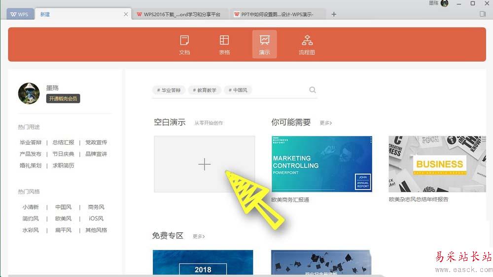 2、然后我們選擇新建一個空白的ppt文檔,如下圖所示,