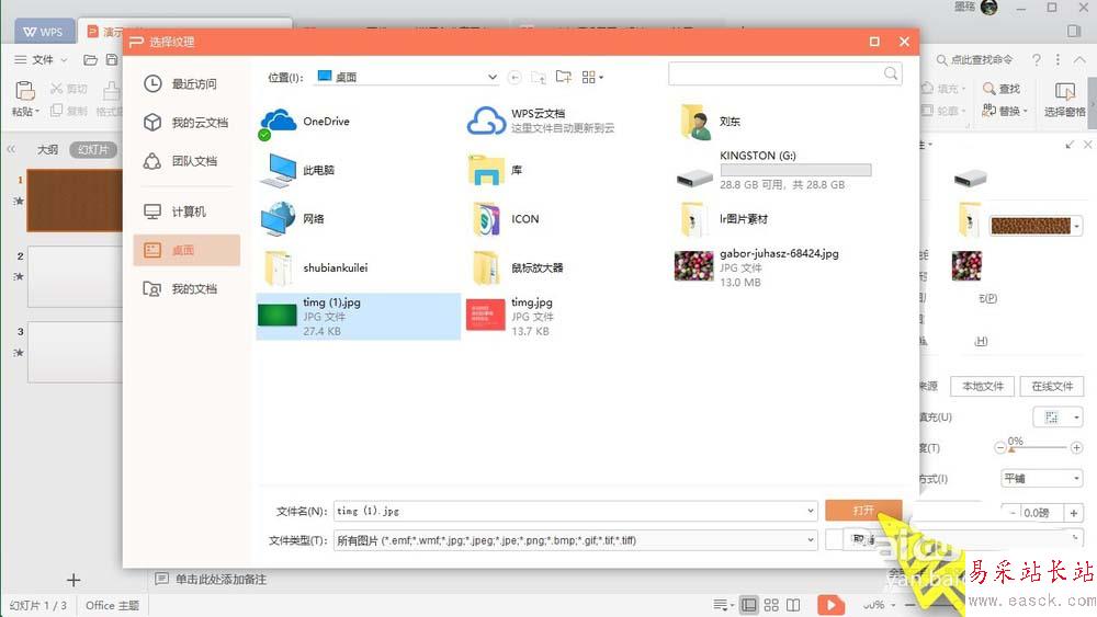 4、在右側打開一個選項卡,我們勾選圖片或者紋理填充,然后點擊下方的本地文件,如下圖所示,