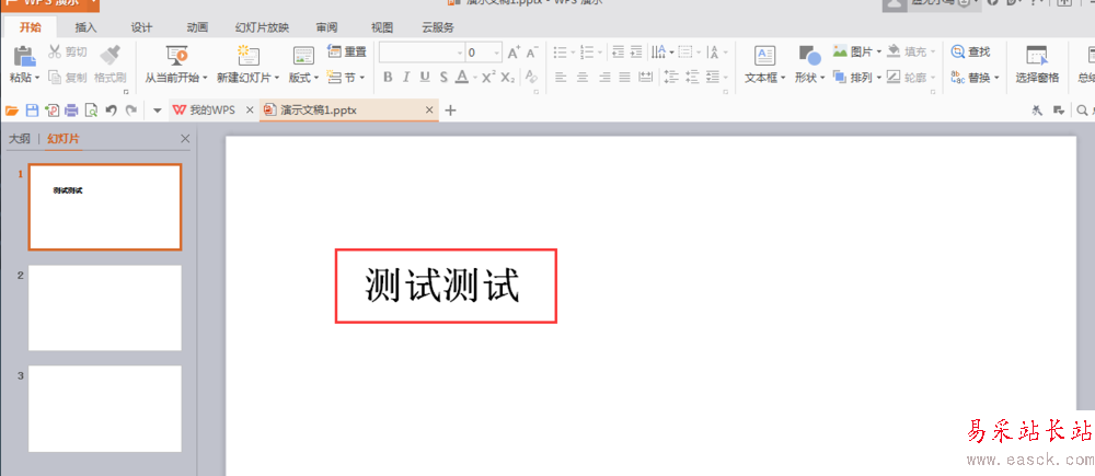 2、可以看到,在第一張幻燈片中有一個(gè)文本框。現(xiàn)在我們用這個(gè)文本框做實(shí)驗(yàn),想要給它添加輪子動(dòng)畫效果,要如何操作呢?我們一起往下看