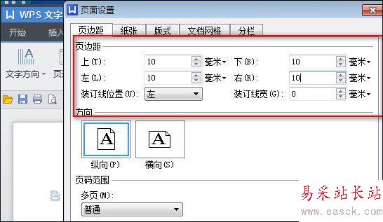 4、如果覺得如上圖設置的上30下20左20右20有些大了,可以根據自己喜好相對設置數值小一些,比如全部設置為什么10,如下圖: