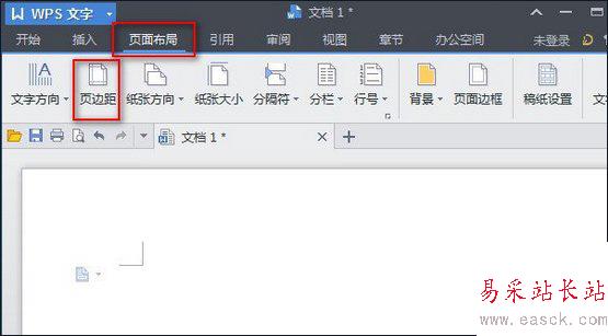2、我們也可從工具欄打開【頁面設置】對話框,方法是打開【頁面布局】選項,點擊【頁邊距】命令圖標。兩種方法不同,但目標一樣,下面就是設置頁面參數了。